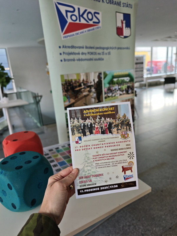 Adventní čas je obdobím klidu, radosti a vzájemné pomoci – a přesně v tomto duchu se nesl již 17. charitativní adventní koncert, který se uskutečnil ve čtvrtek 11. prosince 2025 v Sukově síni Domu hudby v Pardubicích. Krajské vojenské velitelství Pardubice ve spolupráci s Vojenskou hudbou Olomouc připravilo večer plný hudby, vánoční atmosféry a dobrých skutků na podporu Dětského domova Pardubice.