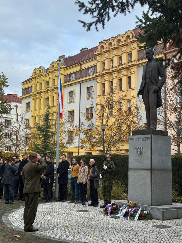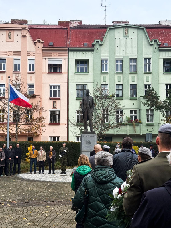 Pietní setkání začalo v 10 hodin u památníku T. G. Masaryka, zakladatele československého státu. Čestnou stráž a ceremoniál kladení květinových darů zajistili vojáci ze 14. pluku logistické podpory, kteří svou přítomností podtrhli význam této události.