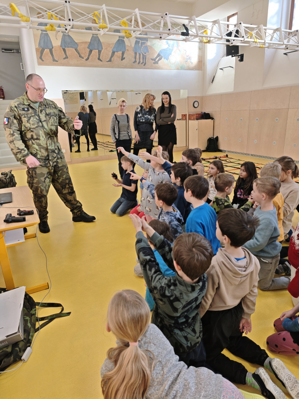 Během dopoledne dětem poutavou formou přiblížili, co všechno obnáší práce vojáka, jakou roli hraje armáda v Integrovaném záchranném systému a proč je důležité být připraven na různé krizové situace. Žáci se dozvěděli, jak se správně zachovat v případě nouze a co by rozhodně nemělo chybět v evakuačním zavazadle.