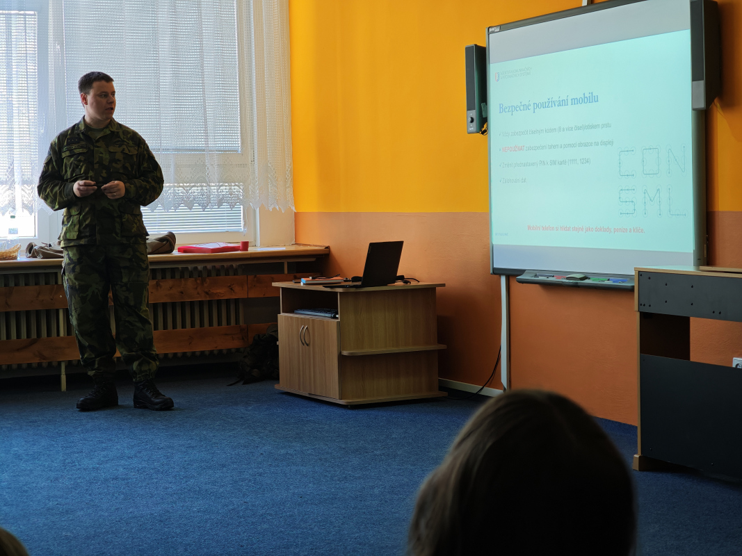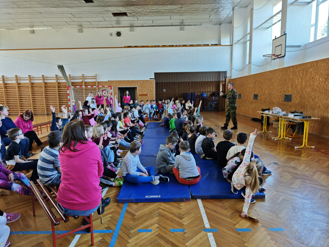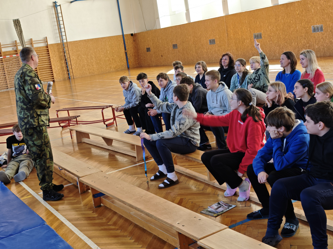 Hned na úvod si žáci připomněli základní informace o armádě. K čemu slouží, kde pomáhá a jakou roli hraje nejen při obraně státu, ale také při mimořádných událostech a krizových stavech. Dozvěděli se, jak funguje voják na cvičení, jaké jsou základní principy maskování a přežití v terénu a jak se chovat v situacích, kdy se mohou občané ocitnout v ohrožení a musí například rychle evakuovat svůj domov. Praktická část patřila také evakuačnímu zavazadlu. Co by v něm nemělo chybět a proč je důležité být připraven, alespoň teoreticky. Součástí programu byla i diskuse o bezpečnosti v širších souvislostech. „Se žáky jsme se bavili o roli NATO a o tom, proč vůbec vzniklo. Snažili jsme se jim přiblížit, proč je v dnešní době důležité spolupracovat a navzájem si pomáhat. Vysvětlili jsme jim, že NATO stojí na principu kolektivní obrany – když má problém jeden stát, ostatní za ním stojí. Tento závazek vychází z článku 5 Washingtonské smlouvy a je jedním z hlavních pilířů celé aliance,“ zaznělo z úst praporčíka Mojmíra Habarta z Krajského vojenského velitelství Pardubice.