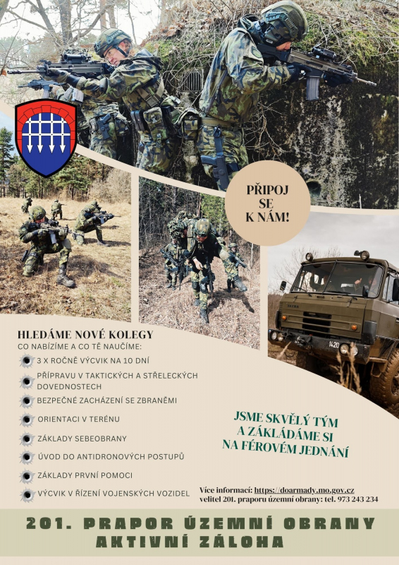 - Staň se vojákem 201. praporu územní obrany při Krajském vojenském velitelství Pardubice